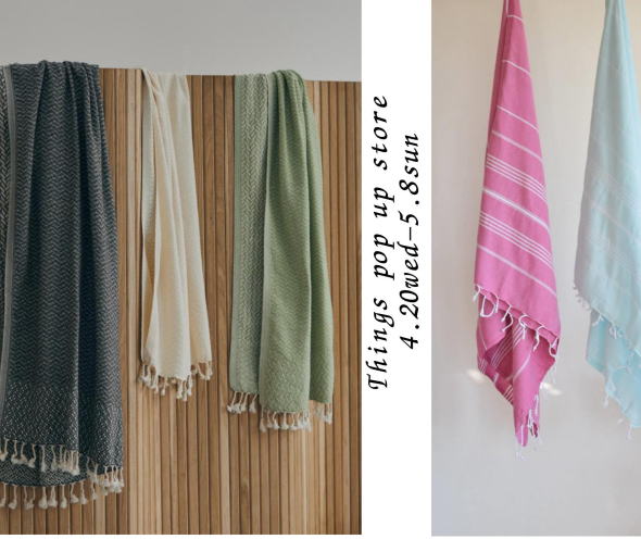 Thingsさんが扱います、ハマムタオル、トルコタオル、ペシテマルなどと呼ばれるカラフルな大判の平織物の販売会です