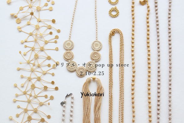 糸から作り出されるアクセサリーは、糸ならではの落ち着いた輝きがあり、その着け心地はとても軽やかなものです。