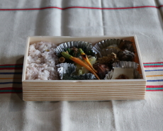 春の景色を詰め込んだ野草尽くしのお弁当。 繁縷、野蒜、カラスノエンドウ、萱草、三つ葉、桜、蕗、