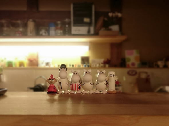 エストニアからやってきましたムーミン一家です。手のひらにちょこんと乗る大きさで白樺の木で作られています。