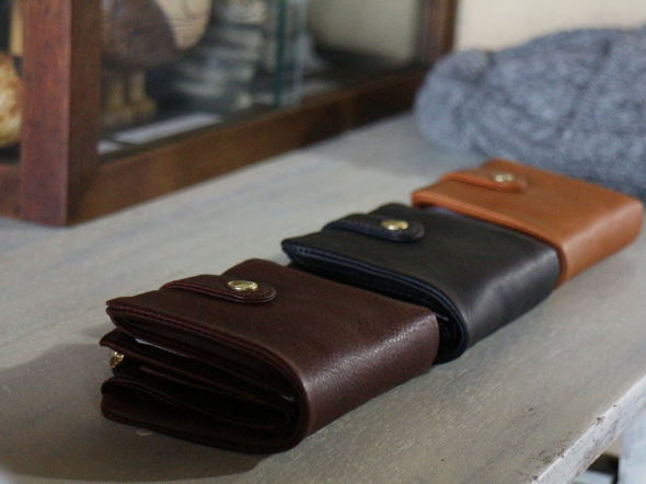 長財布、二つ折り、小さな財布の三種類がございます。 どのタイプも無駄のないシンプルなデザインで、作りと素材の上質さを感じてもらえます。長いタイプは大きすぎて、小さな財布ほどコンパクトにできない方にはこちらがおすすめです。