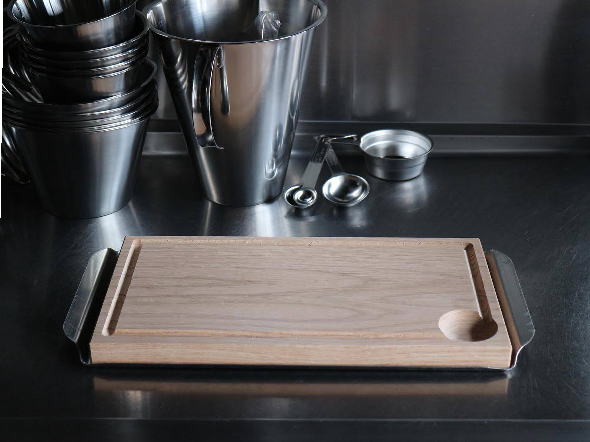 Planked steak boardとtray。 カッティングボードとステンレス素材のトレーはセットしても、別々にでも活躍します。