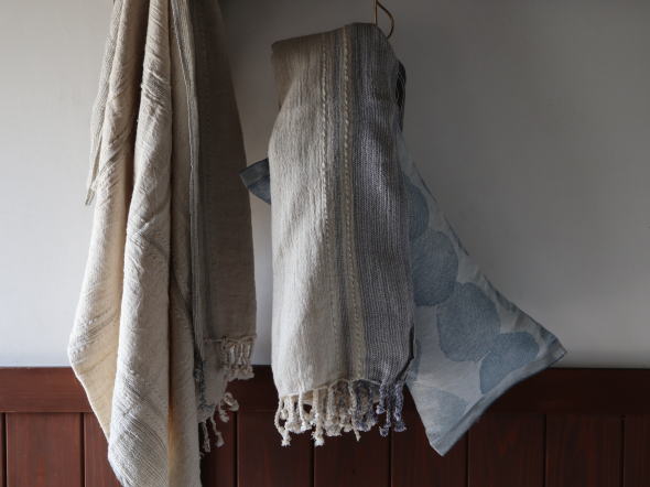 こちらのシーペシテマルは、手織りにて製作されたリネン100%。リネンのさらりとした素材感と手織りならではの