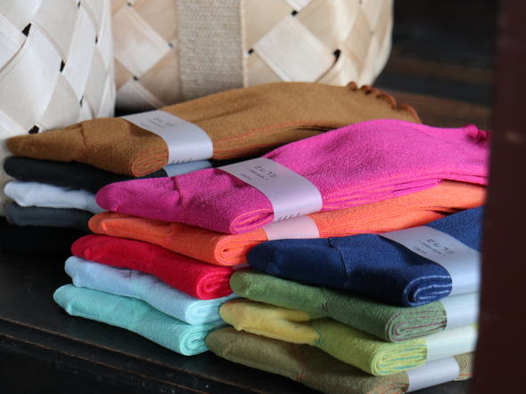 靴下の産地である 奈良で作られる靴下です。使う糸や履き心地の良さはもちろんのこと、履いてステキと感じるデザイン。