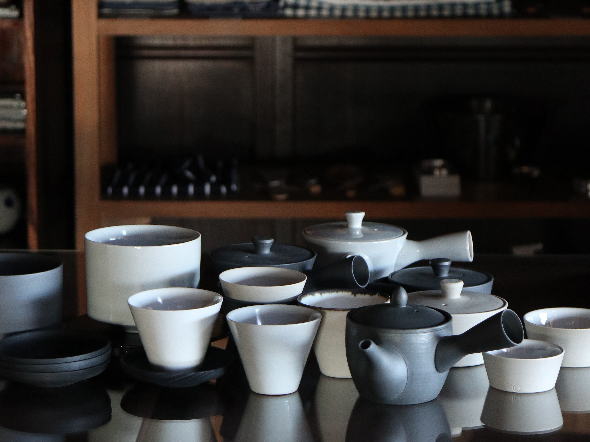 調和のとれた佇まいの茶器の品たち 昔から急須の産地として知られる萬古焼。