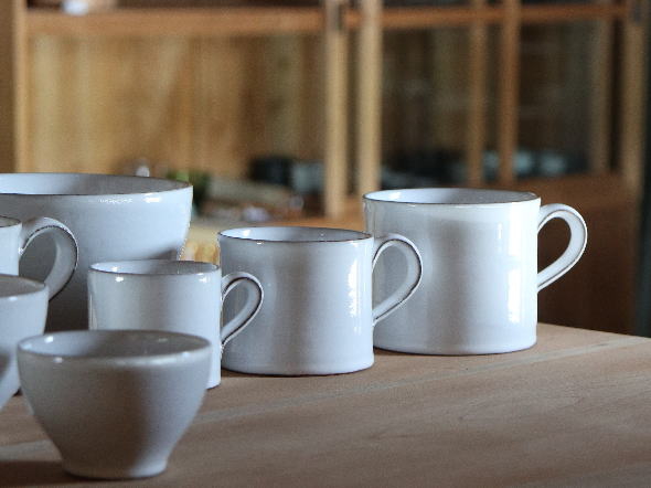 琺瑯のような質感を思わせる“白”と調和のとれた佇まい。でありながら、ろくろで成形されるアイテムにはぬくもりがあります。