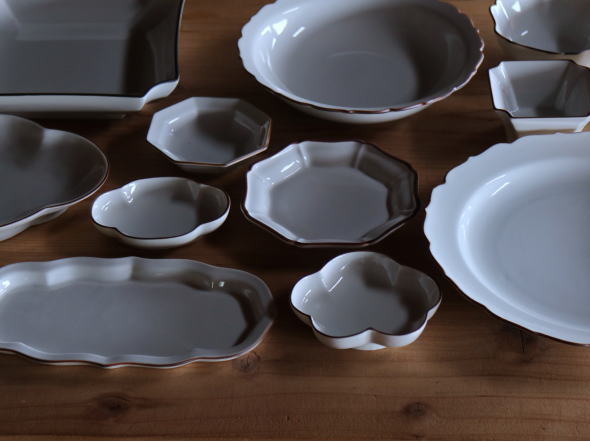 九谷焼の素地の白と、口縁の伝統的な形のきれいが合わさるNOVEM。