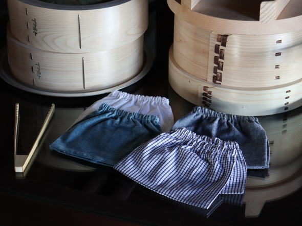 家仕事のときに袖口が濡れたり汚れたりしないように。ゴムはきつすぎず、このくらいシンプルなのがいいと思っています。