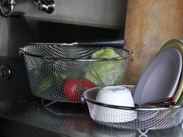 新潟県燕三条のbe worth style。使う、仕舞う、取り出すを、台所でスムーズにできる水切りがごです。