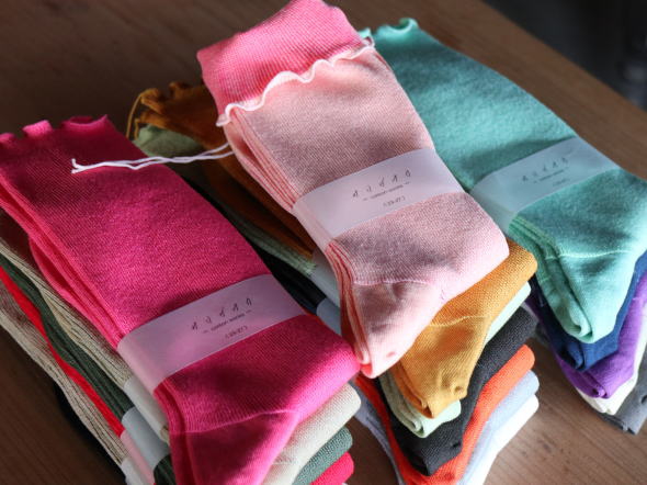 サリゲナク靴下(ヒムカシ)。コットン素材、春夏の靴下が入荷しています。