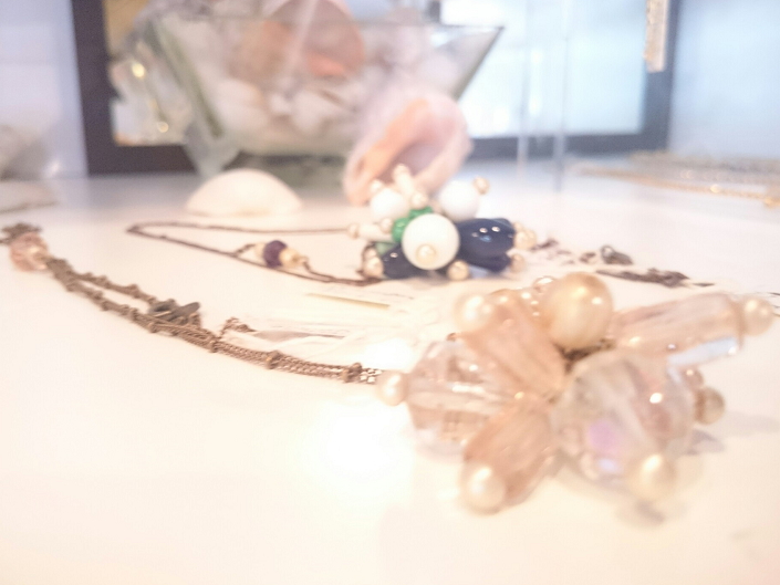 「j.jacgorno」のアクセサリーはアンティークアイテムを使い全て手作りされています。